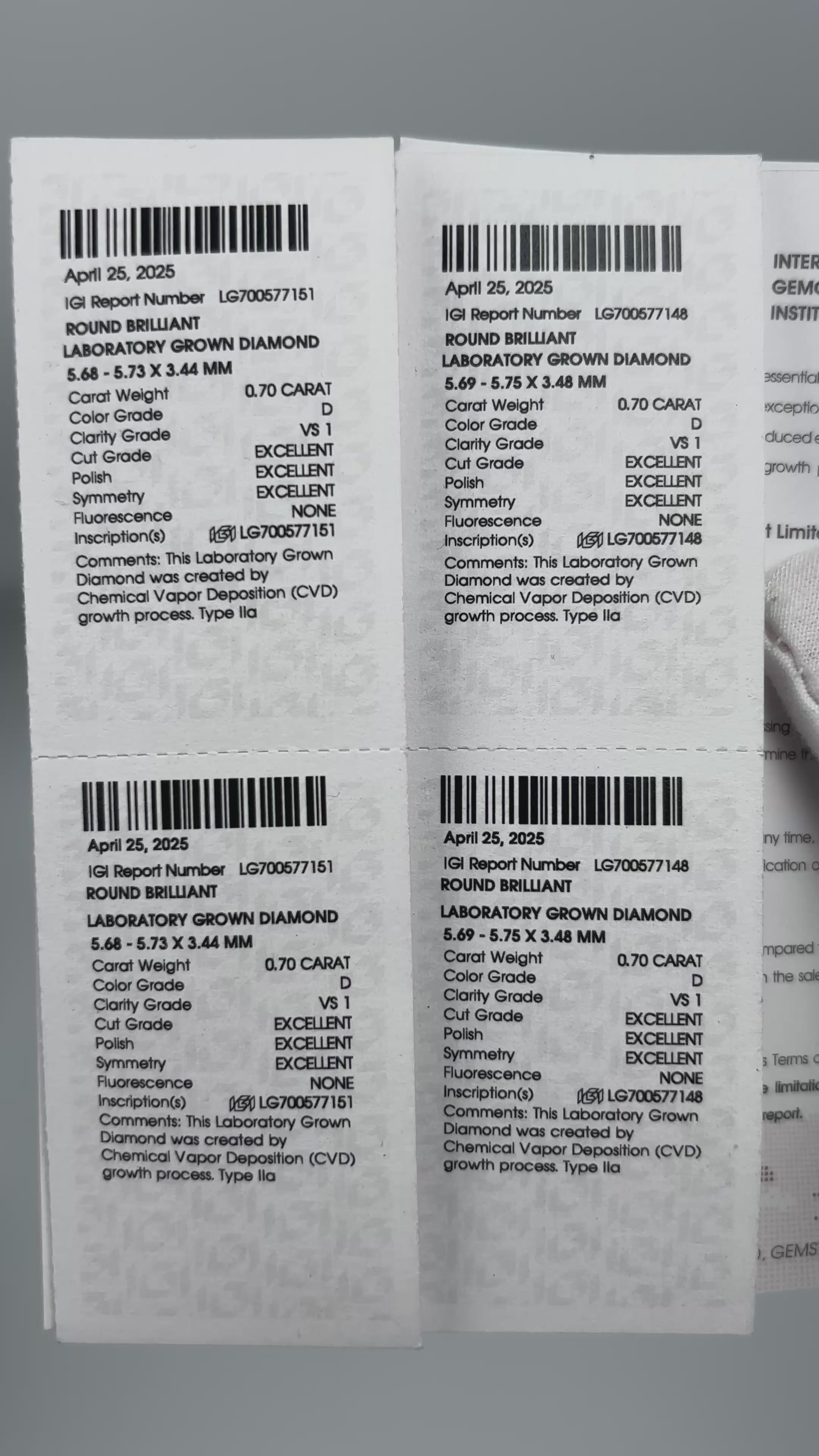 0.7CT X2 VS1 D color ex IGI certified